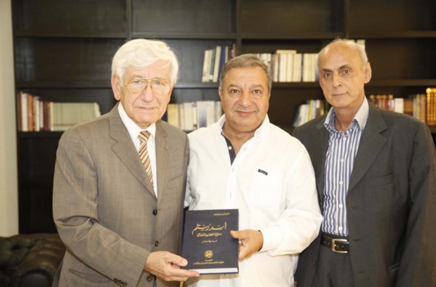 رستم يرافقه الزميل غابي عبد المسيح وقدم اليه كتاب "اسد رستم مؤرخ الكرسي