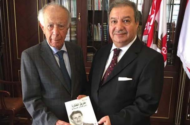 الاستاذ عوني الكعكي الزميل عزت صافي الذي قدم اليه كتابه "طريق المختارة زمن